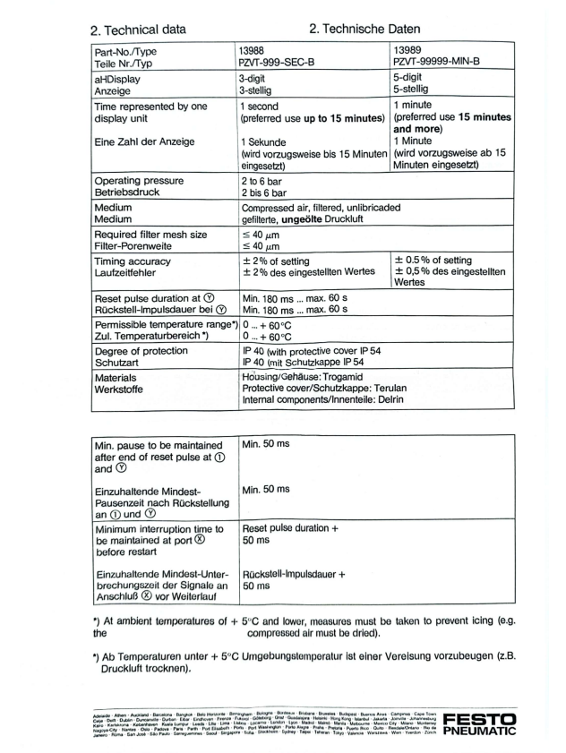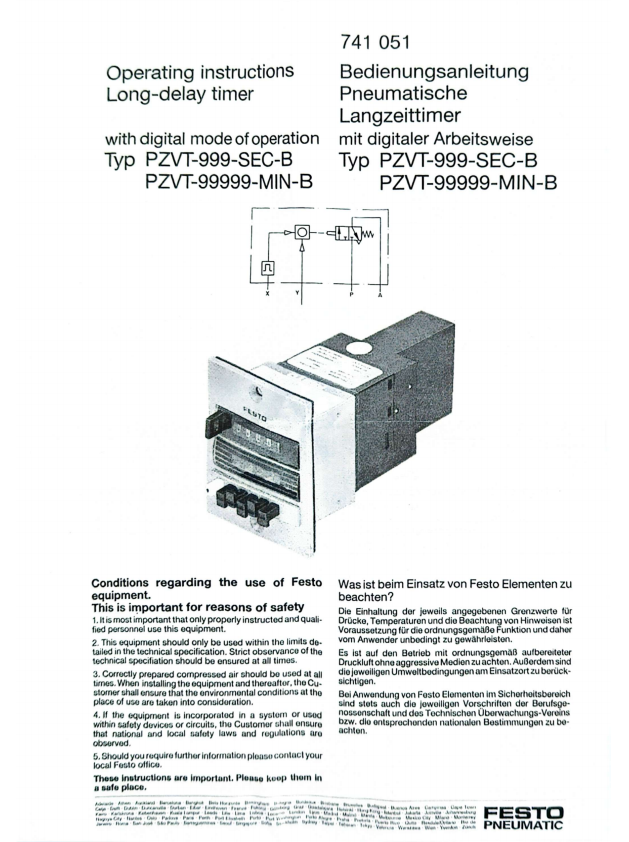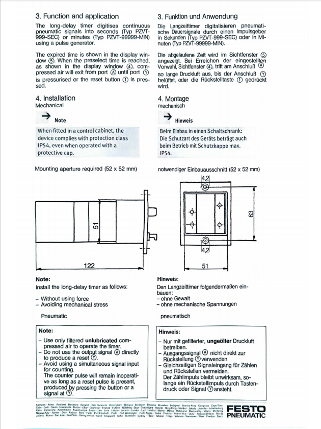 德国FSTO工业计时器 费斯托PZVT-999-SEC-B定时器 全气动计时 精度高